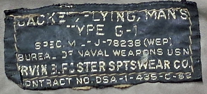 Manufacturer is Irving Foster Sportswear Company. Contract number for this specific jacket is DSA-1-435-0-62. Has a characteristic mouton fur collar.